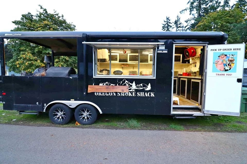 We passed this Food Truck that parks at the entrance to Meadowlark RV Park every time we went in and out. That's teasing look made us want to stop at the Oregon Smoke Shack!